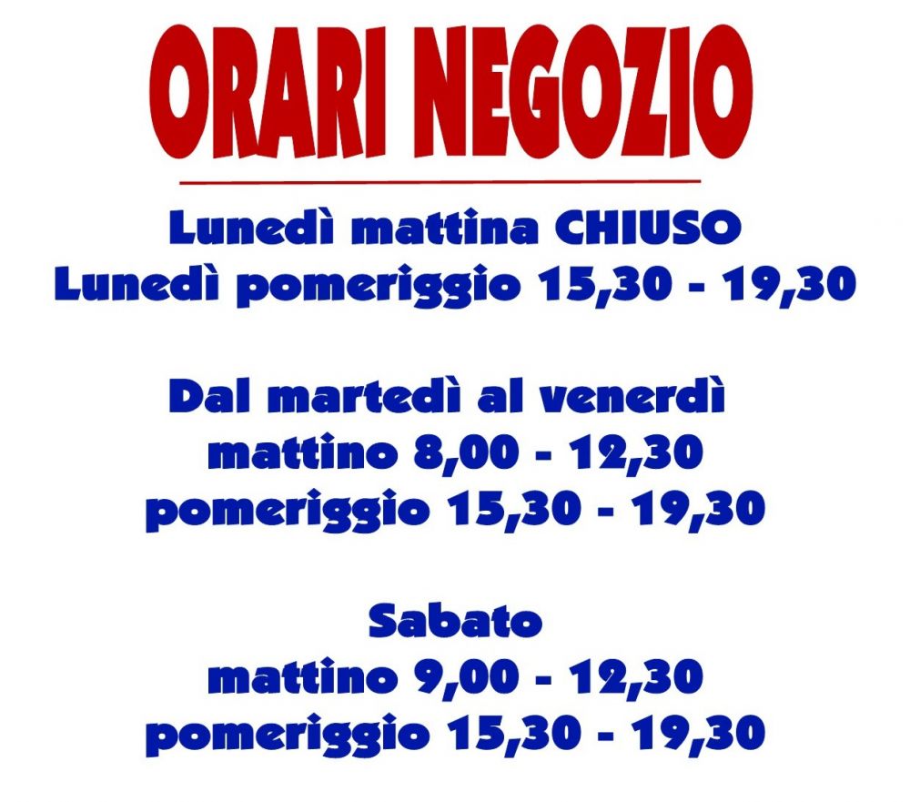 NUOVI ORARI NEGOZIO