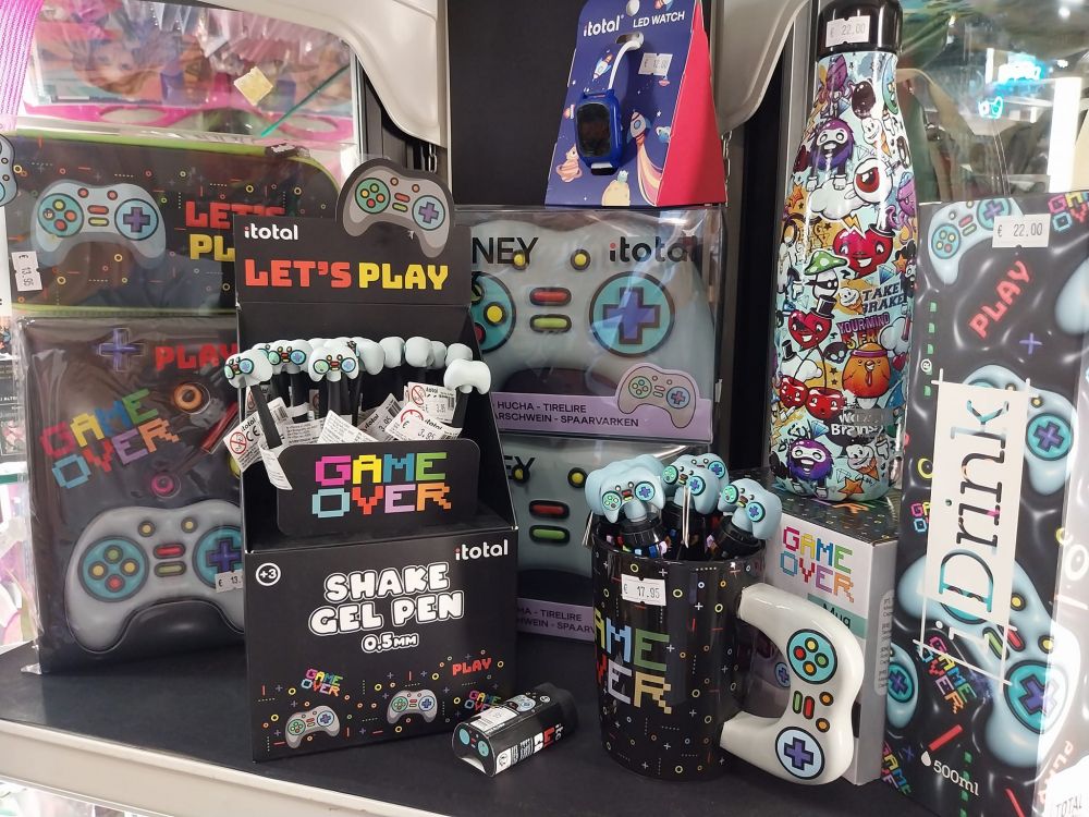 Pantofole, cuscini, bicchieri portapenne, diari personali, cofanetti, salvadanai, tazze, borracce, penne, matite, borse, zainetti, portafogli ....