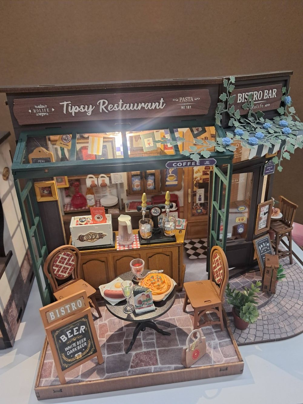 Kit da assemblare raffiguranti ambientazioni in miniatura con luci led.